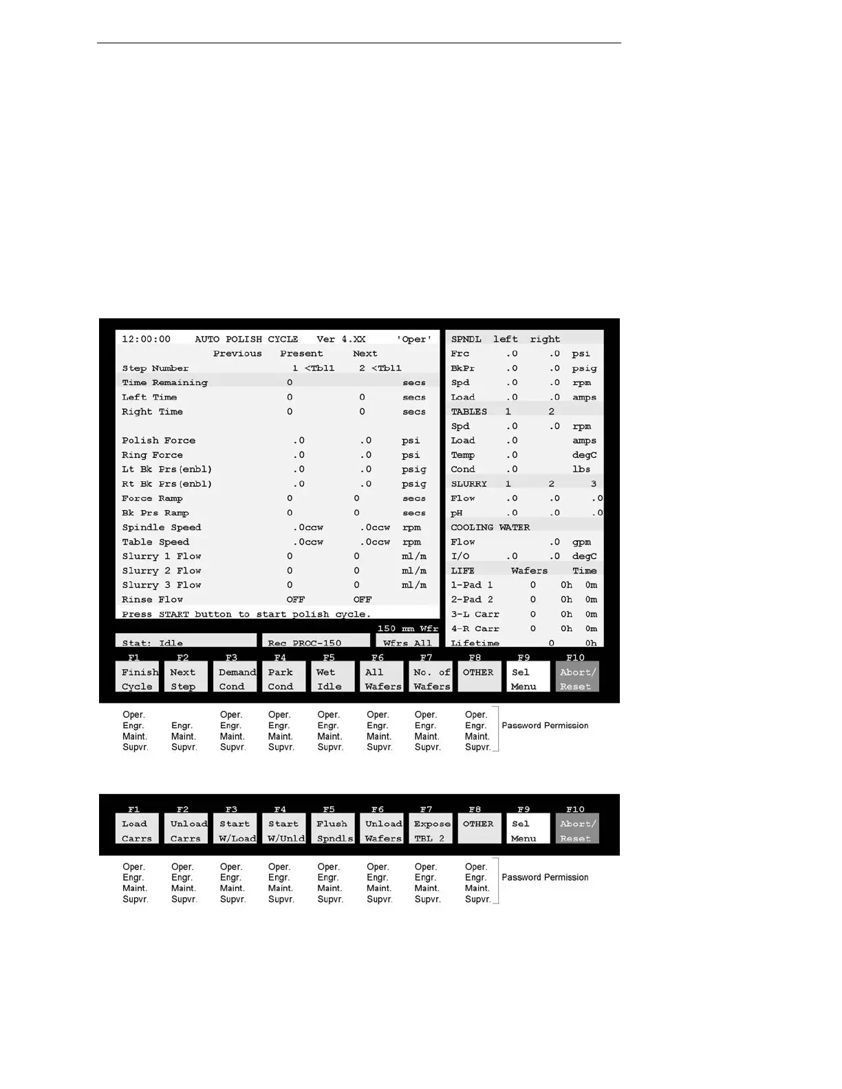 machine. A polishing cycle may be started when this menu is showing.