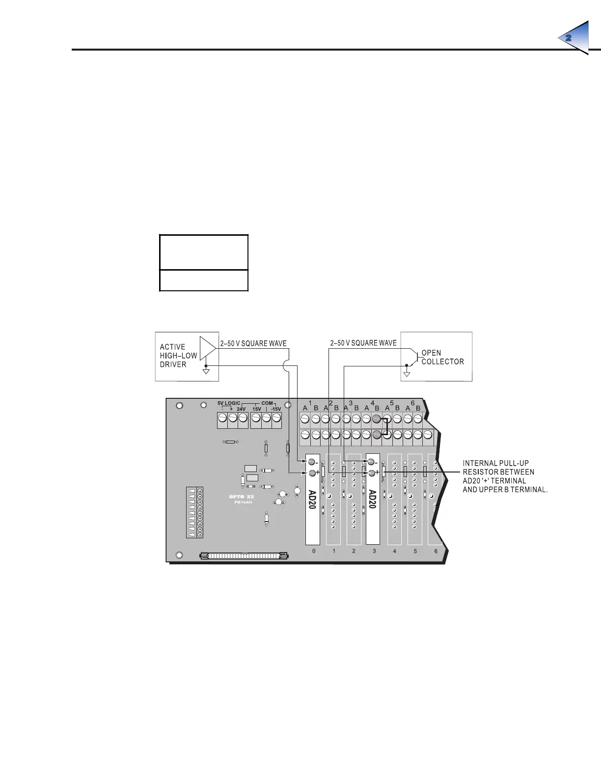 wiring options to channels 0 and 3 on a PB16AH rack. Note that the internal pull-up is between the