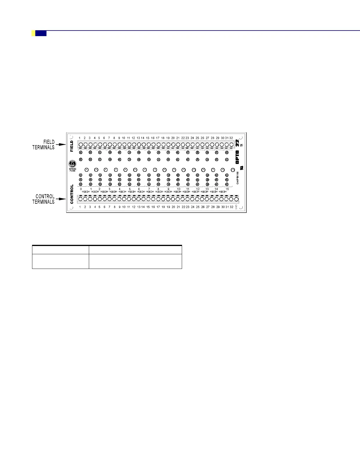 Barrier strips with screw terminals provide the field, control, and mounting rack power connections.