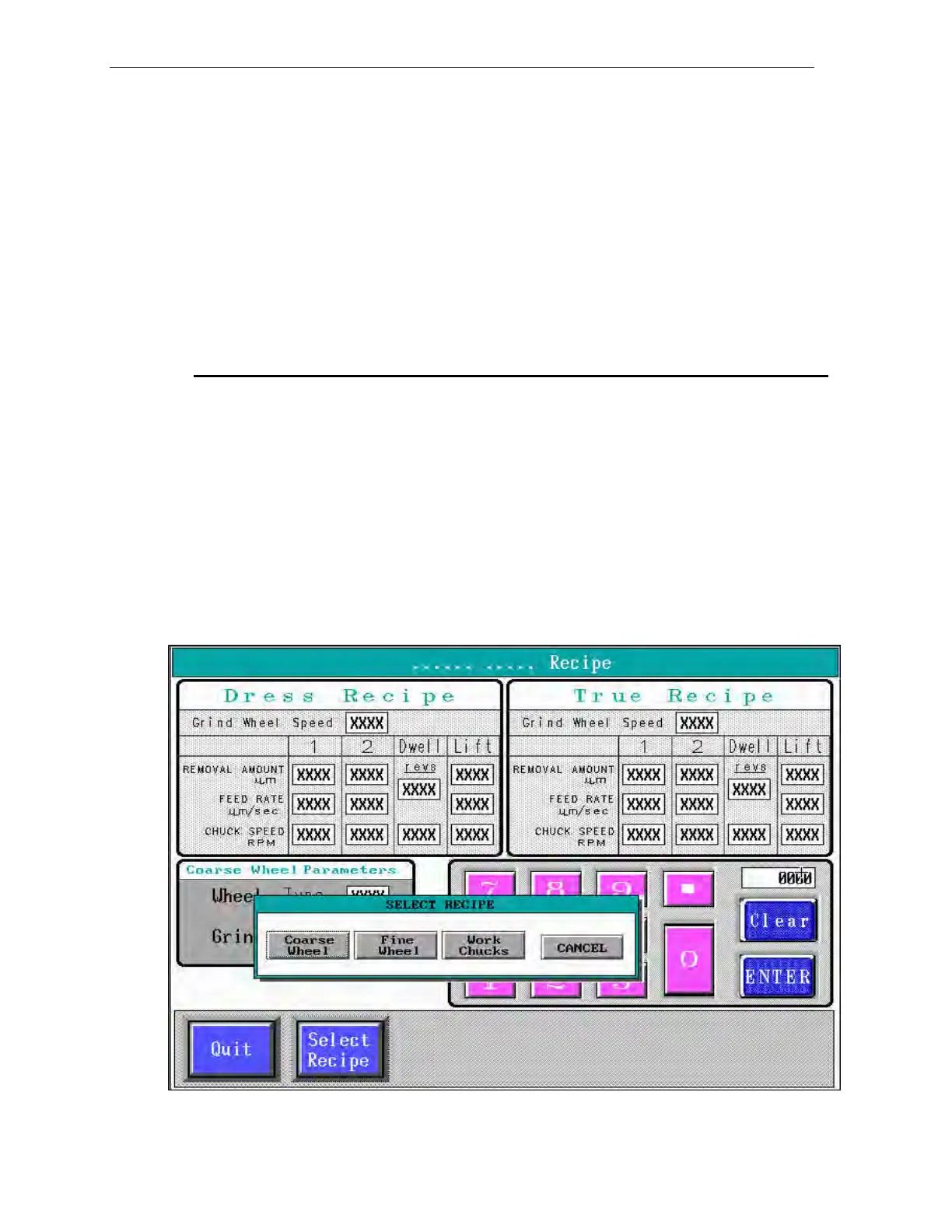 Figure 9-2 Wheel and Chuck Recipes Menu