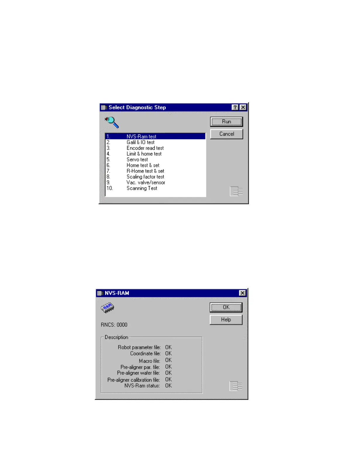 The NVS-Ram (Non Volatile Static Ram) test displays the status of