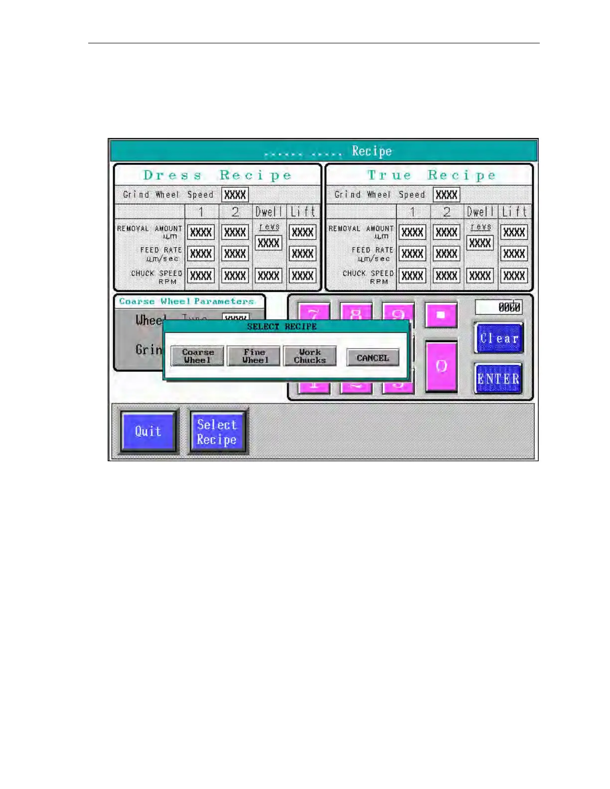 Figure 3-12 Wheel and Chuck Recipes Menu