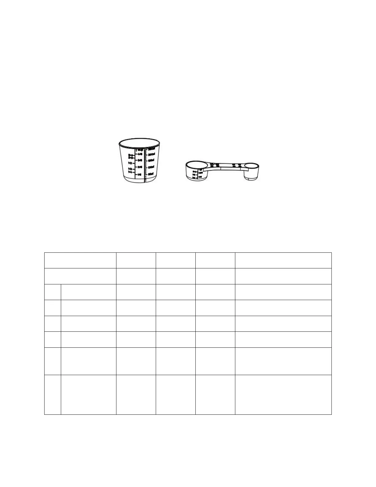measuring cup and measuring spoon or a kitchen scale. The larger side of the measuring