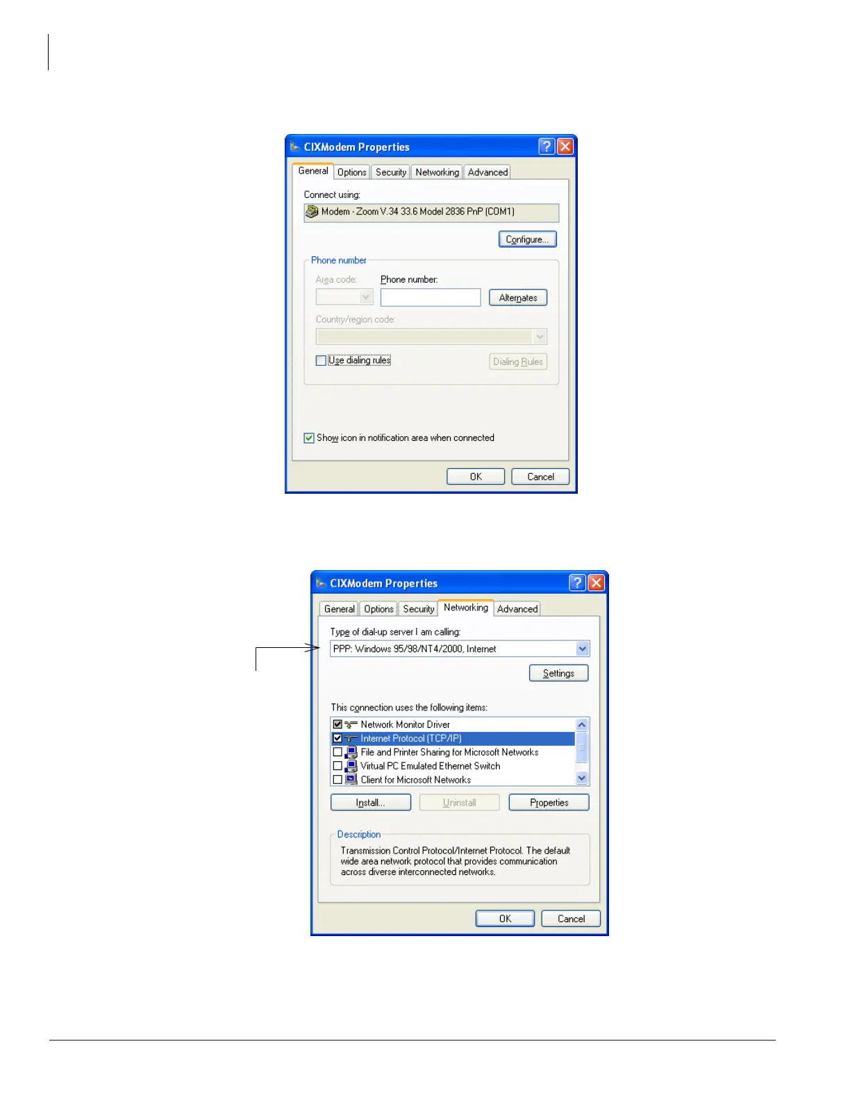 The CIXModem Properties dialog box will open.