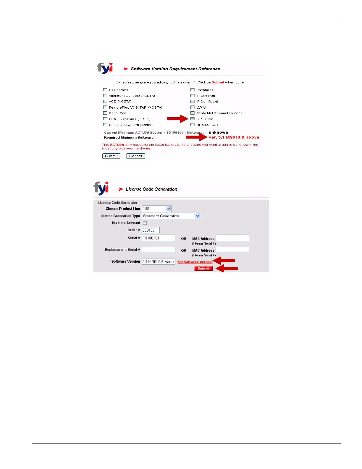 3. You are returned to the License Code Generation screen with the software version populated.