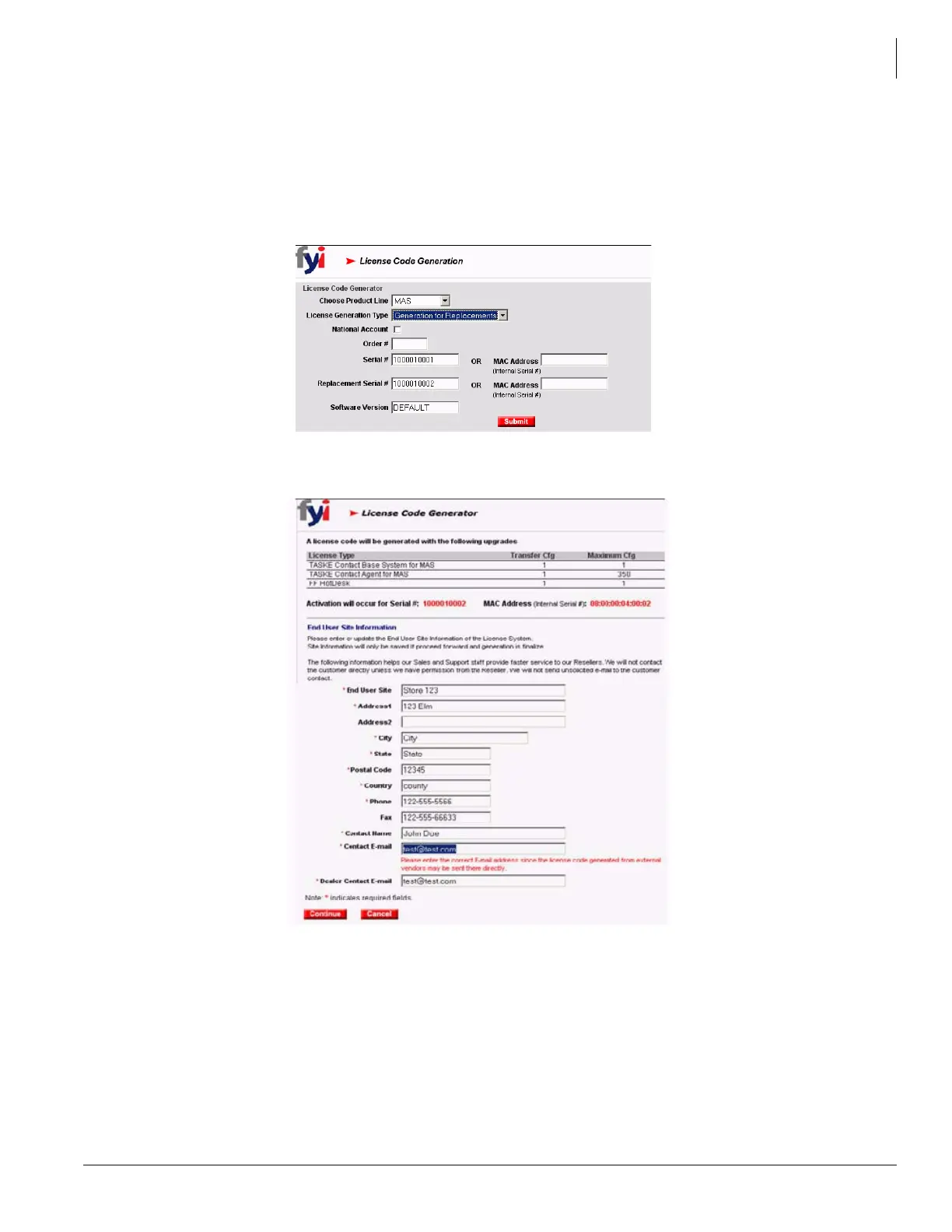 3. In the next screen, License Code Generator, enter the End User Site information (* are required fields).