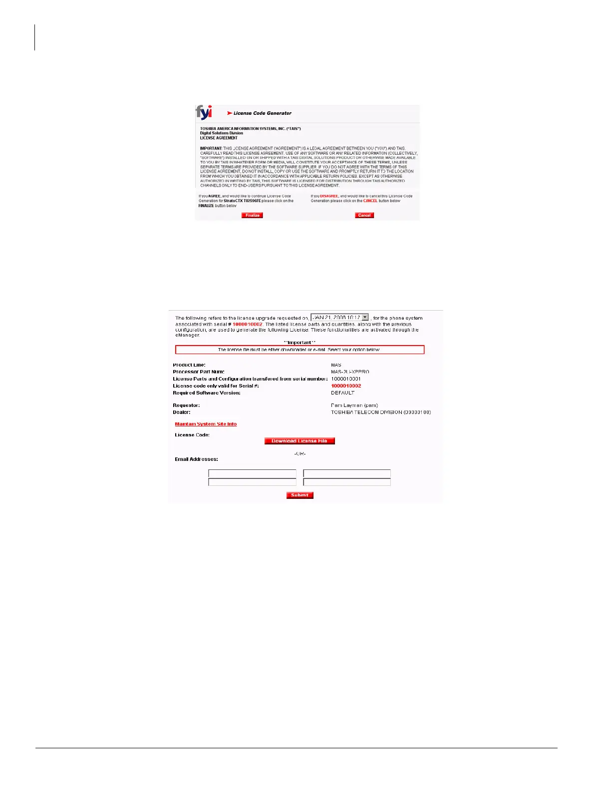 5. The License Display Page displays all information for the generation. This page explains that a transfer was