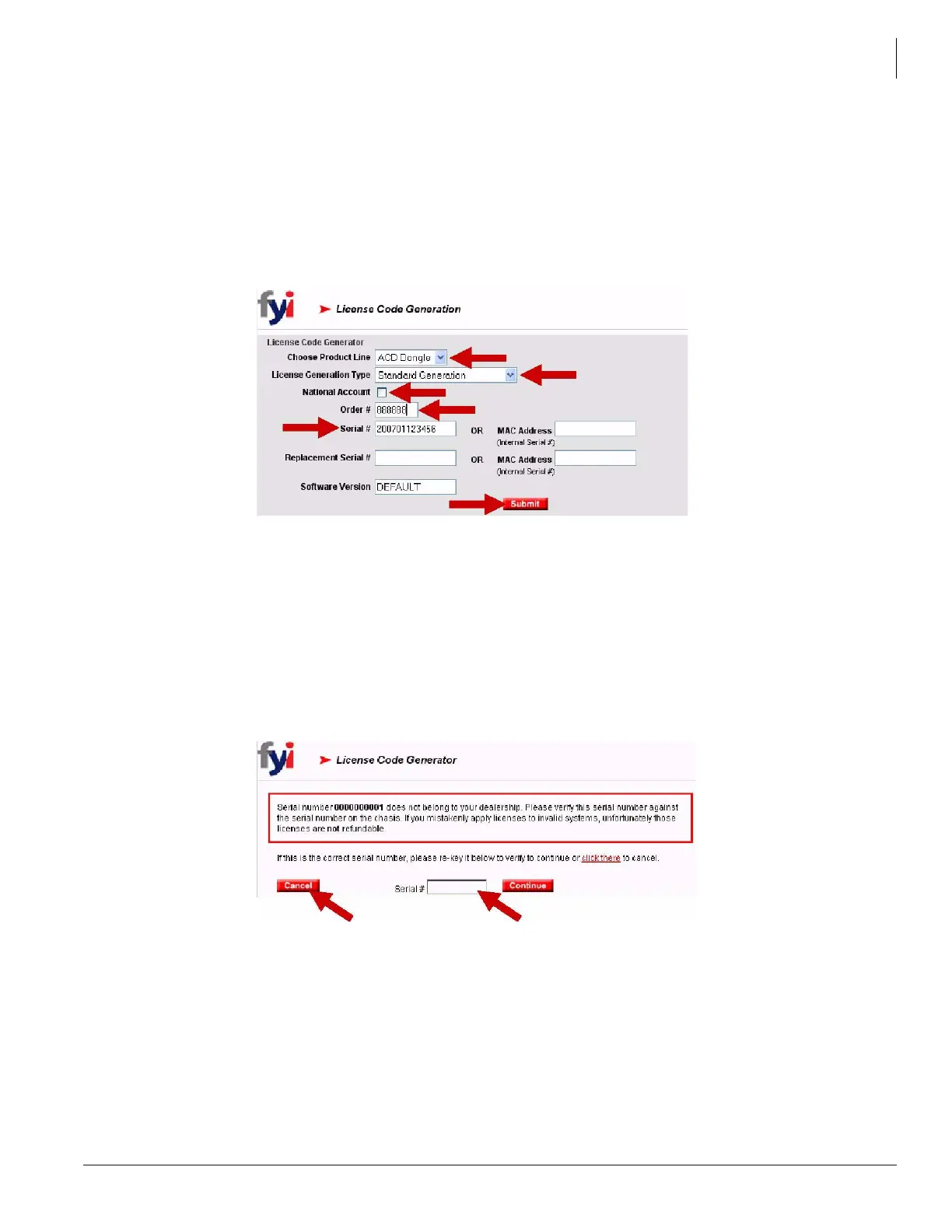 If a serial number is entered that does not belong to your dealership, the warning below will display. If you re-