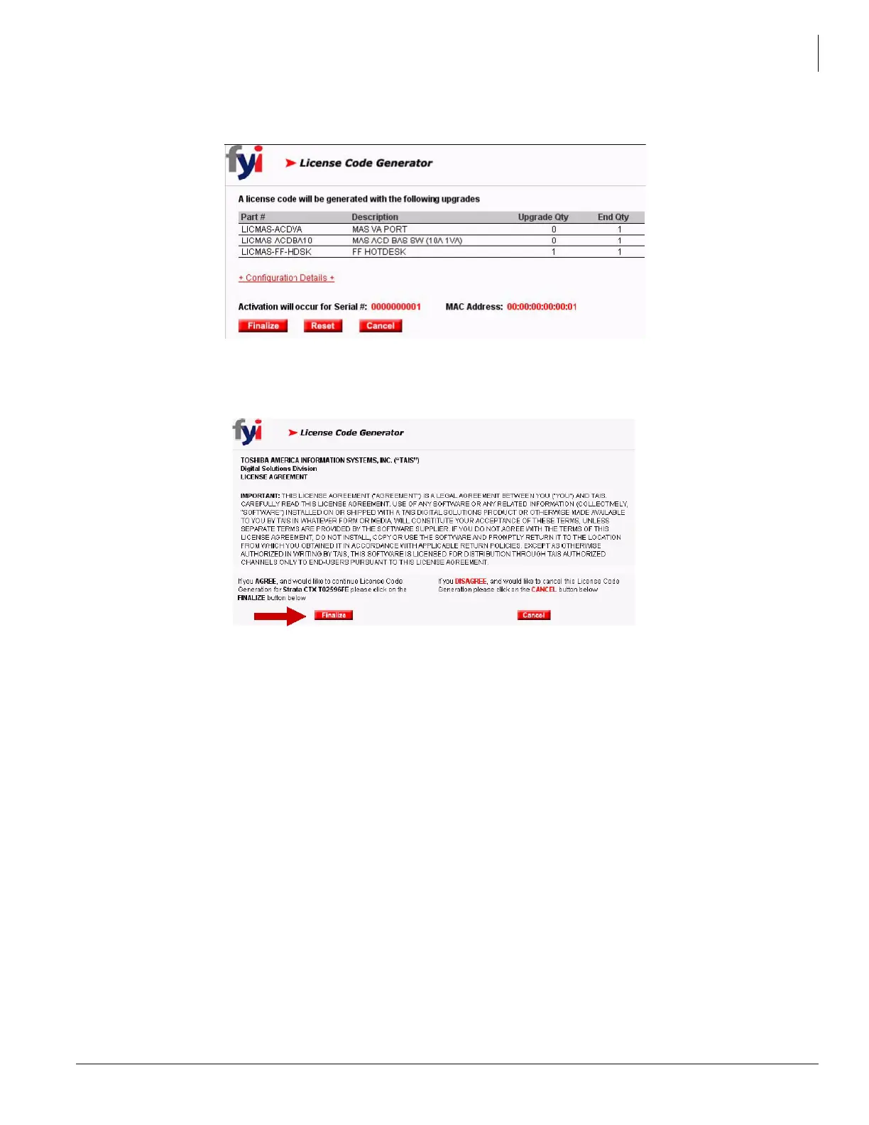 7. The License Agreement will display for you to read and agree. Click Finalize.