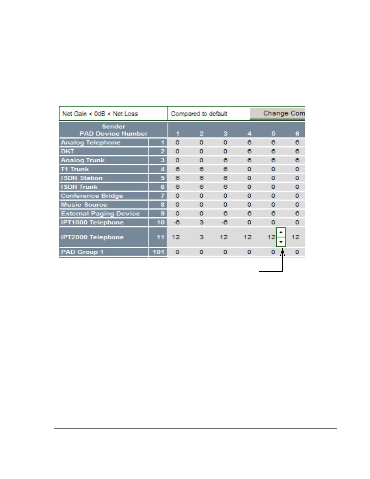 Network eManager displays PAD values as a worksheet (partial example below). To change a value click