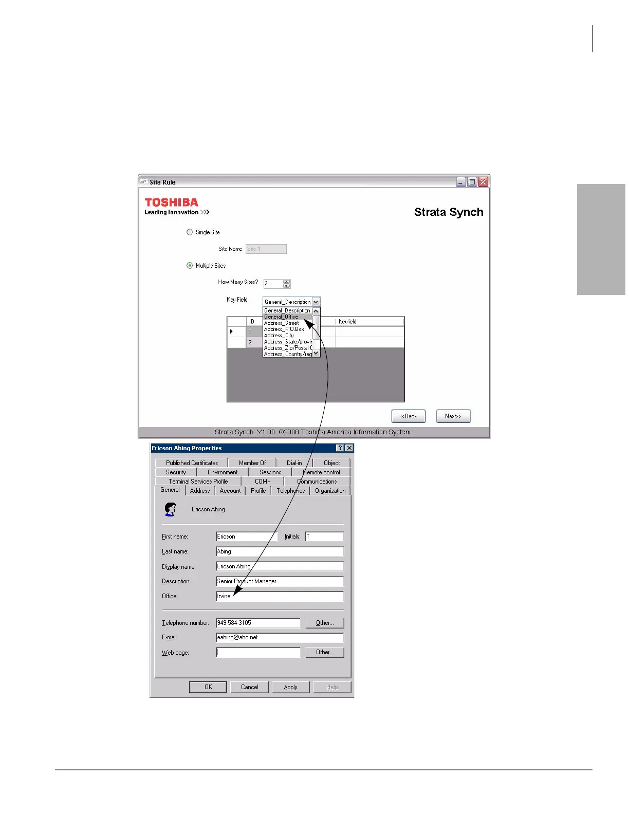 in the User’s property window, General tab, Office field.