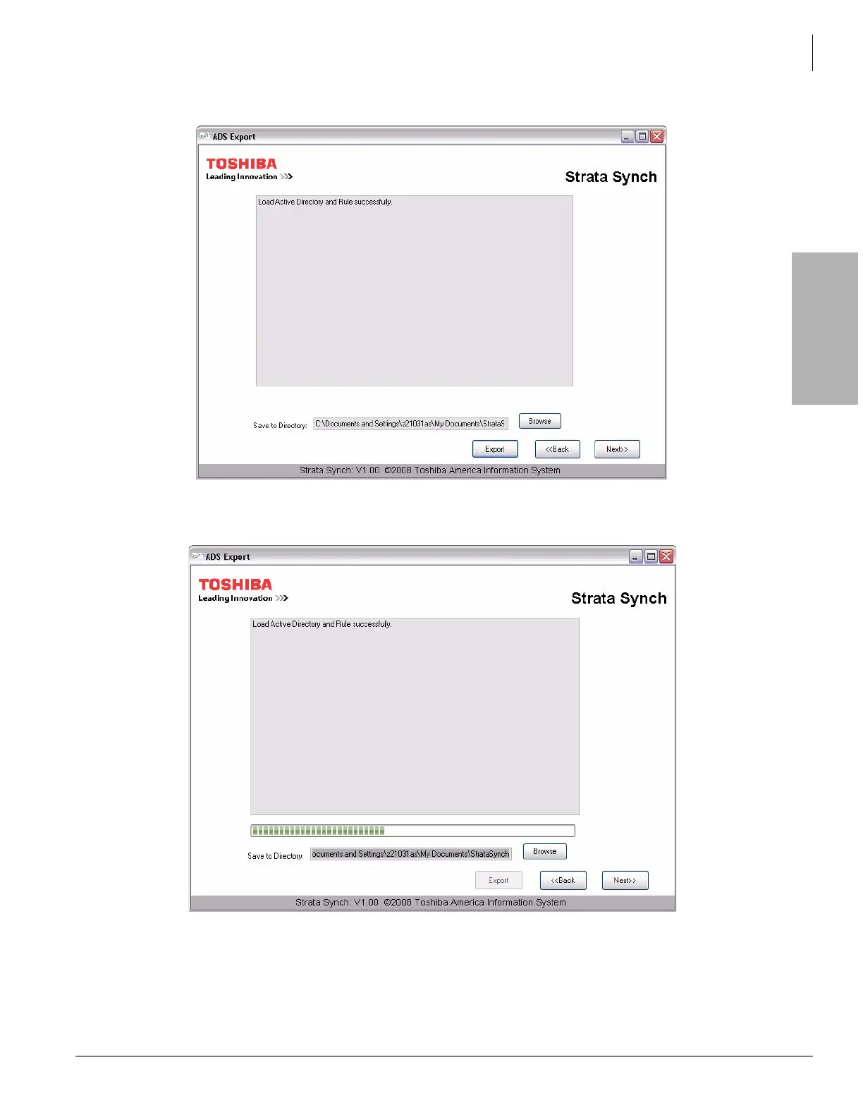 7. Click Next to start the Export process.