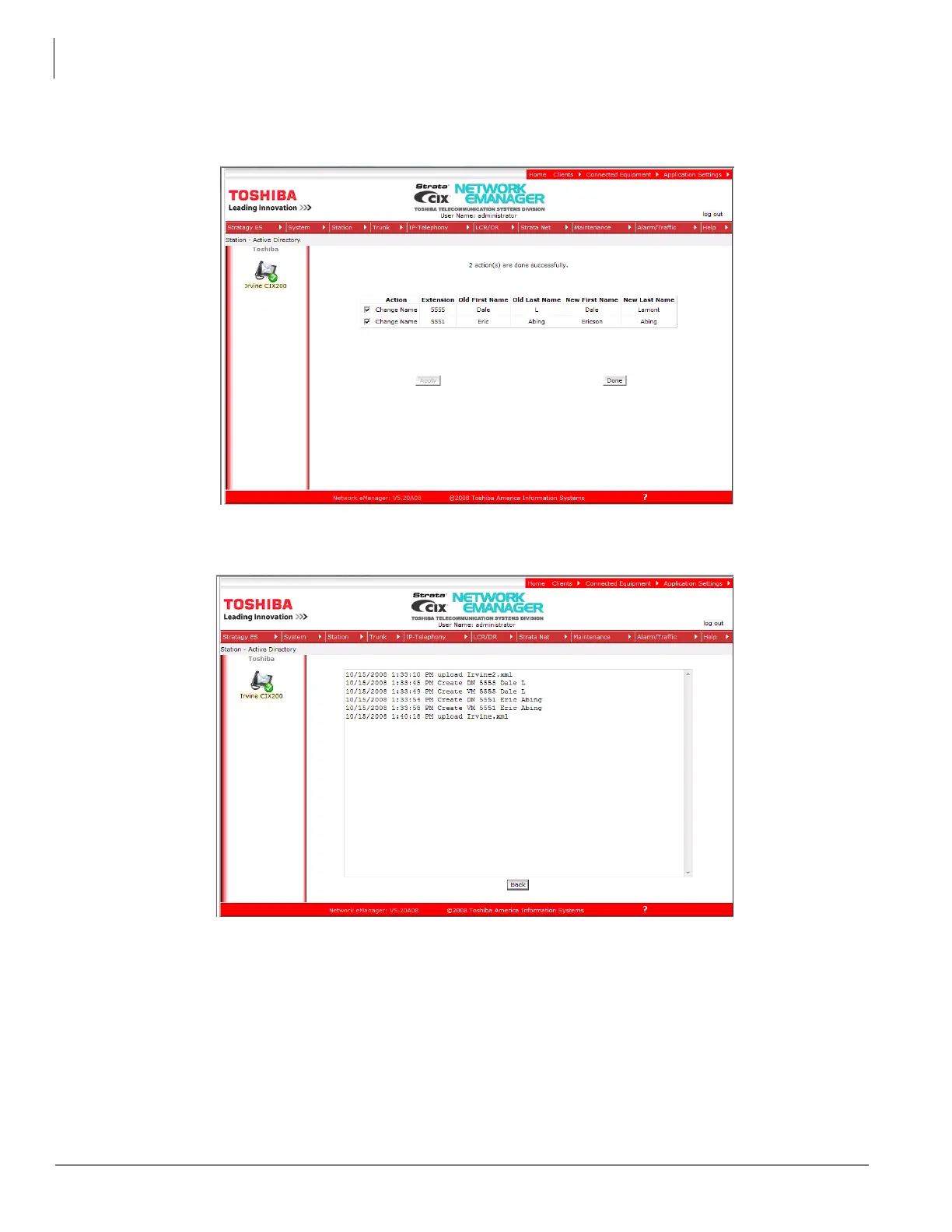 This example shows both items were selected, the Apply button was clicked, and Network eManager successfully