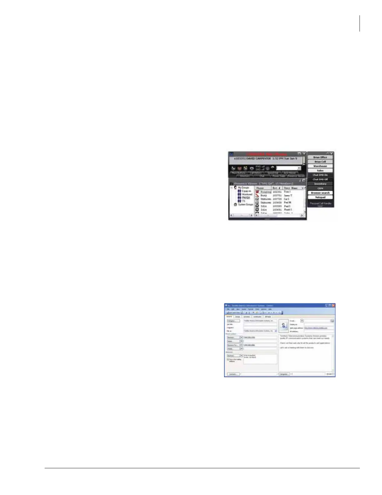 • Desktop Call Control – Using the Toshiba Strata Call Manager (SCM) desktop call manager