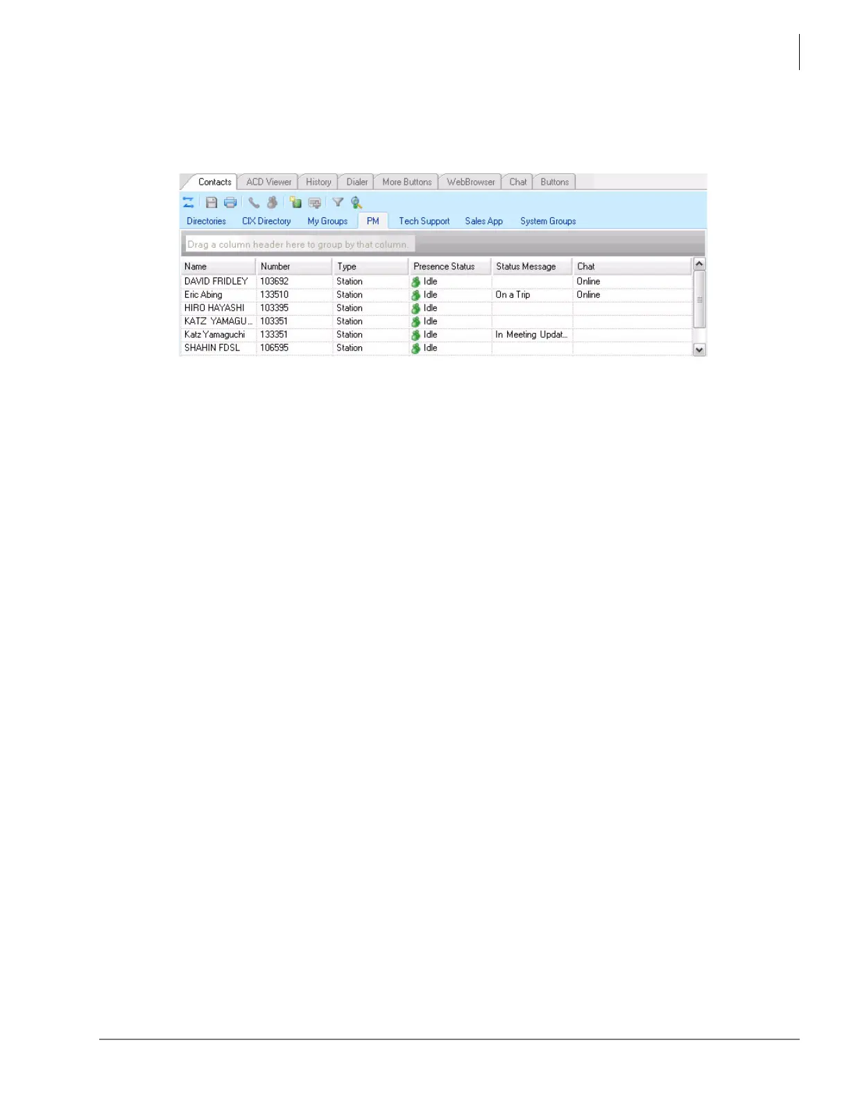 Status” icon showing your own status in the group (logged in, logged out, busy, in wrap-up, etc),