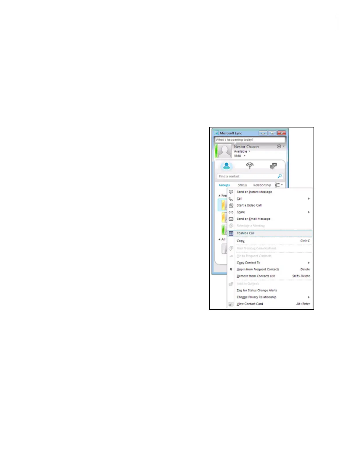 Toshiba has a plugin that is installed on a customer’s PC to integrate with the Microsoft Lync