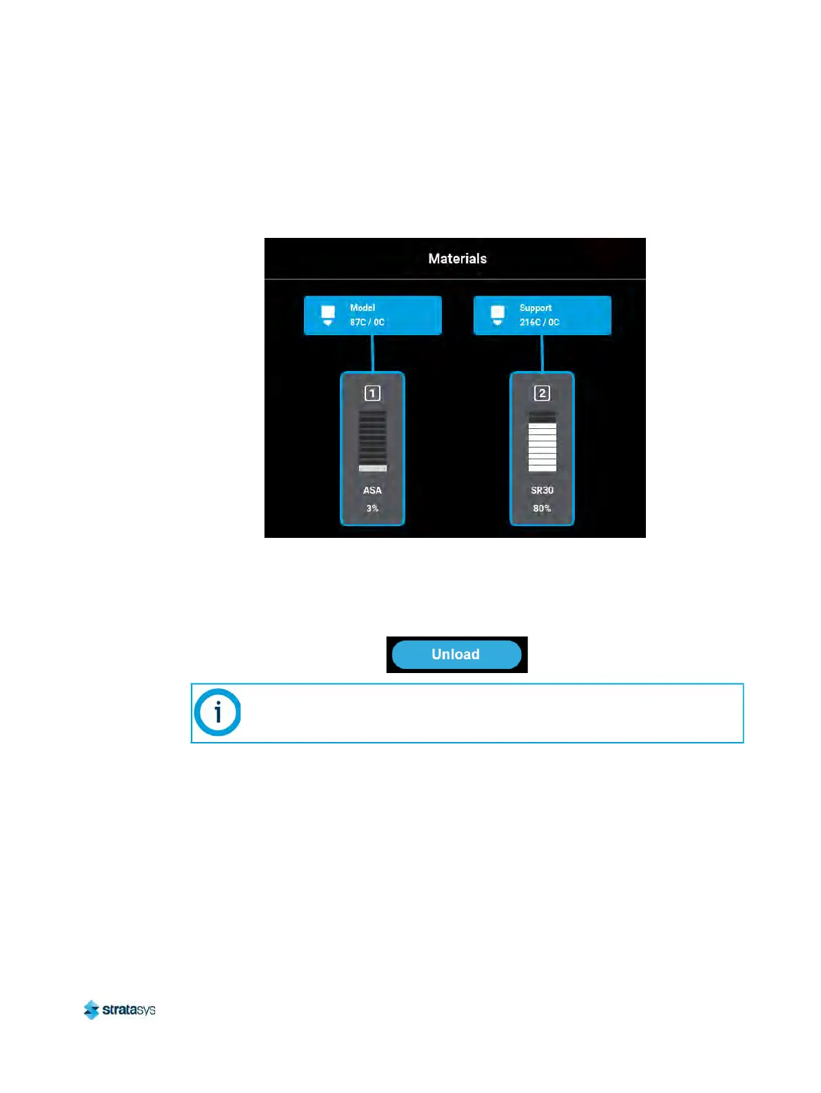 Only one material can be unloaded at a time.