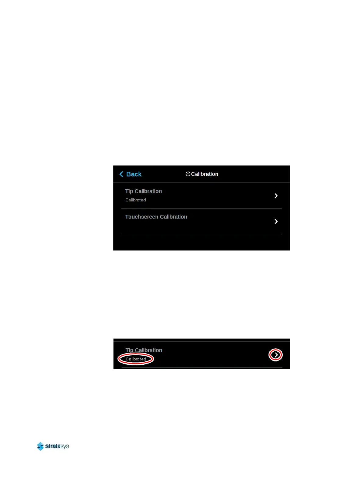 The printer’s calibration status will be displayed within the Tip Calibration row. Calibrated or