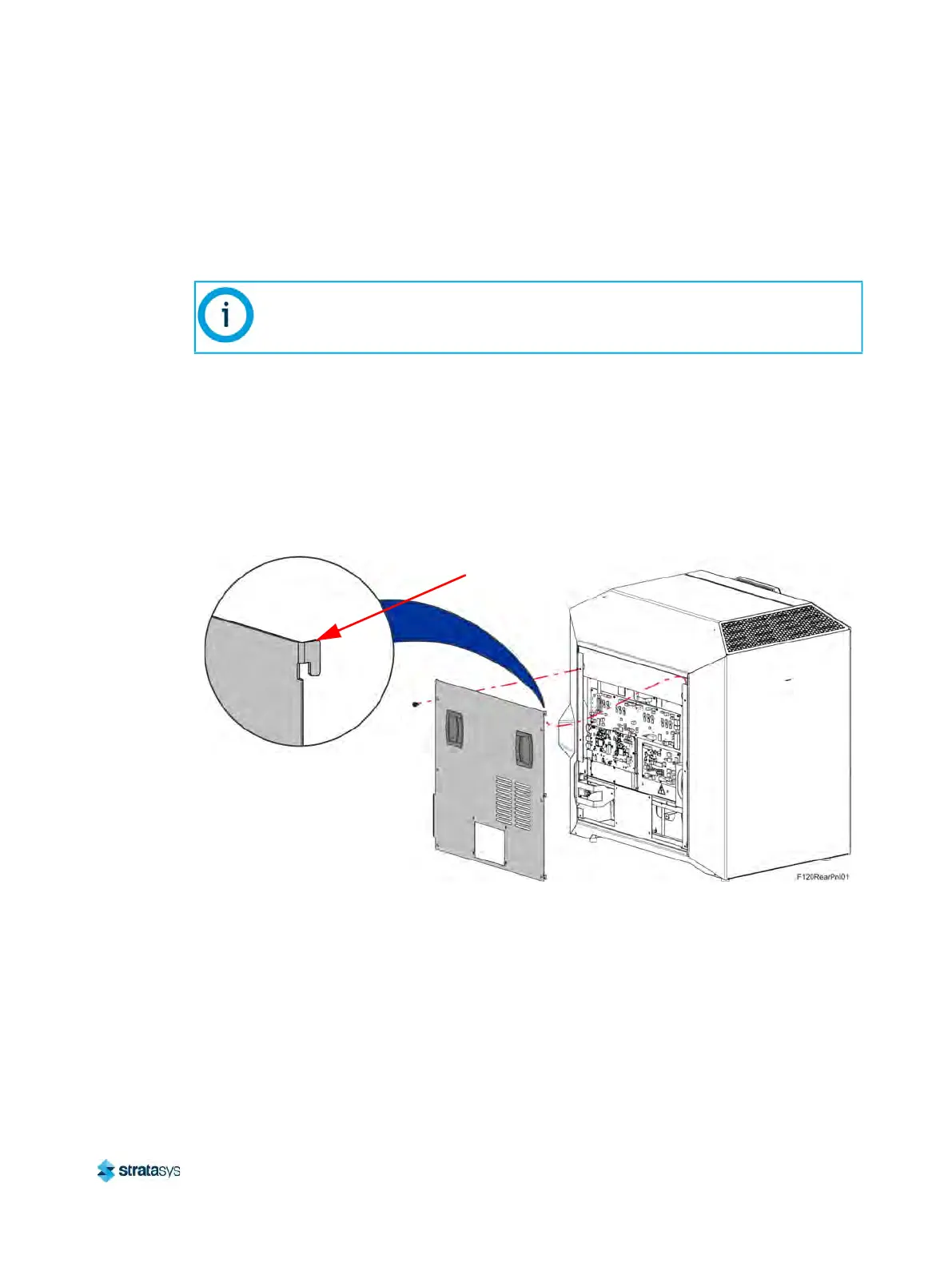 4. The rear panel has formed tabs that allow it to hang on the printer frame. Remove the rear