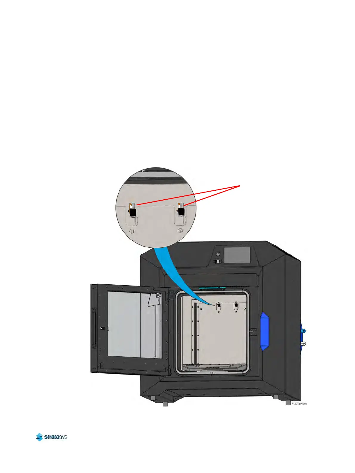 Two tip wipe assemblies are located in the rear of the oven, one for model and one for support.