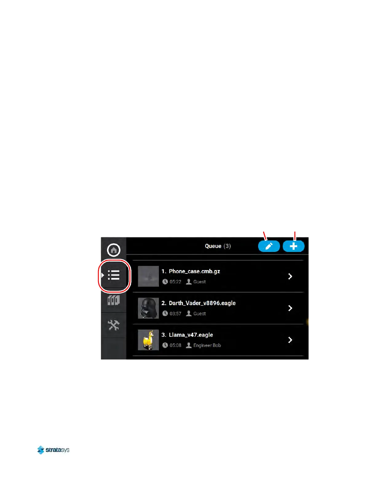 files to the Job Queue, select a file to build, sort jobs within the Job Queue, view additional
