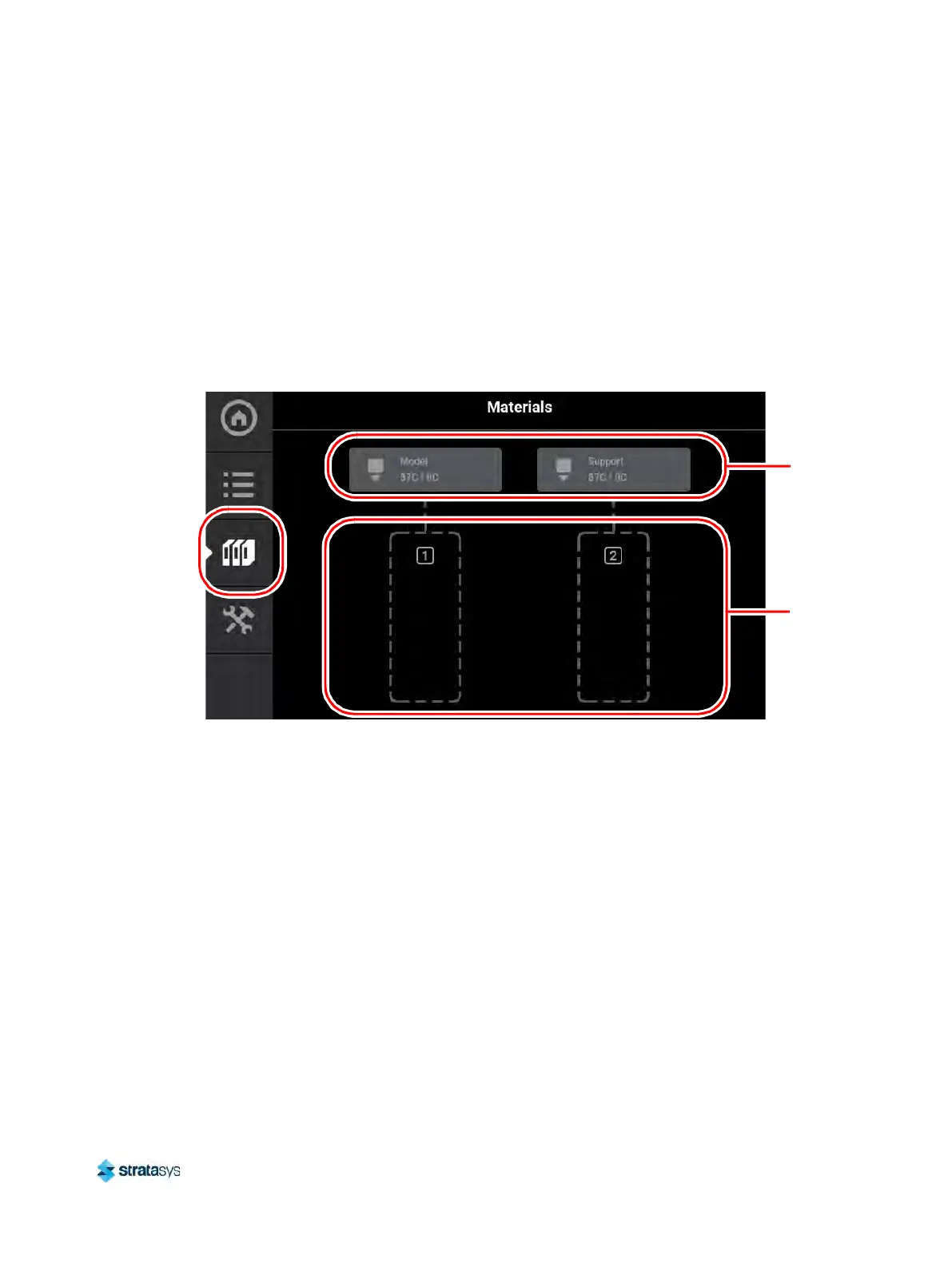 st icon indicate the status of the printer’s support material while the left-most icon indicate