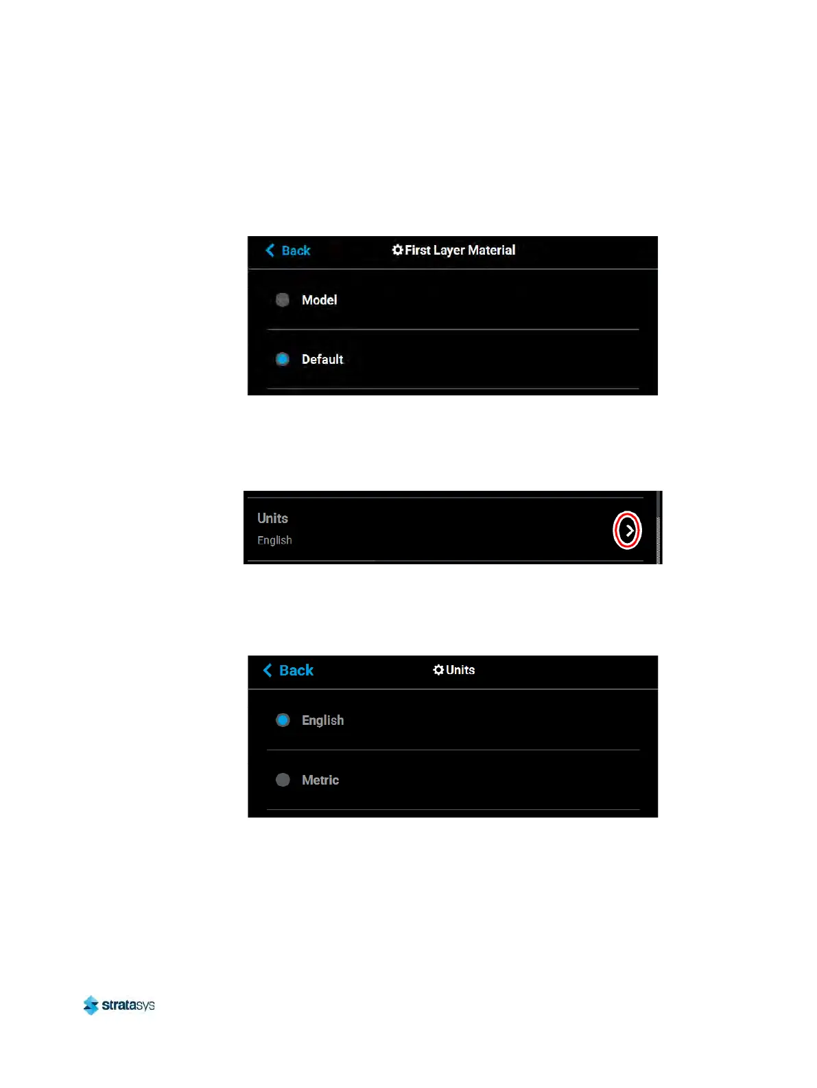 To configure this setting, press anywhere within the row; the First Layer Material page will be