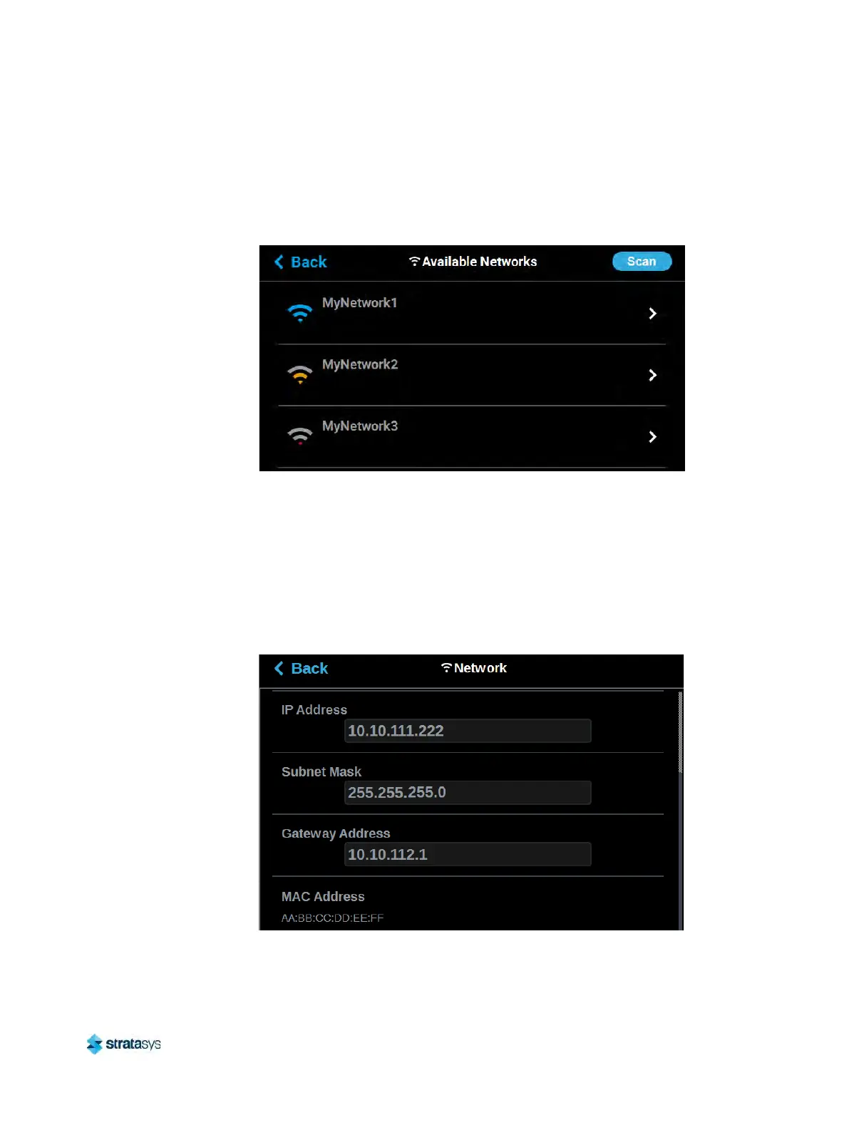 applicable), and saving the network configuration, press the Back button to exit and return to