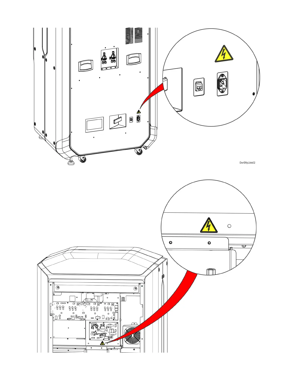 Figure 1-3: Electrical panel safety label locations