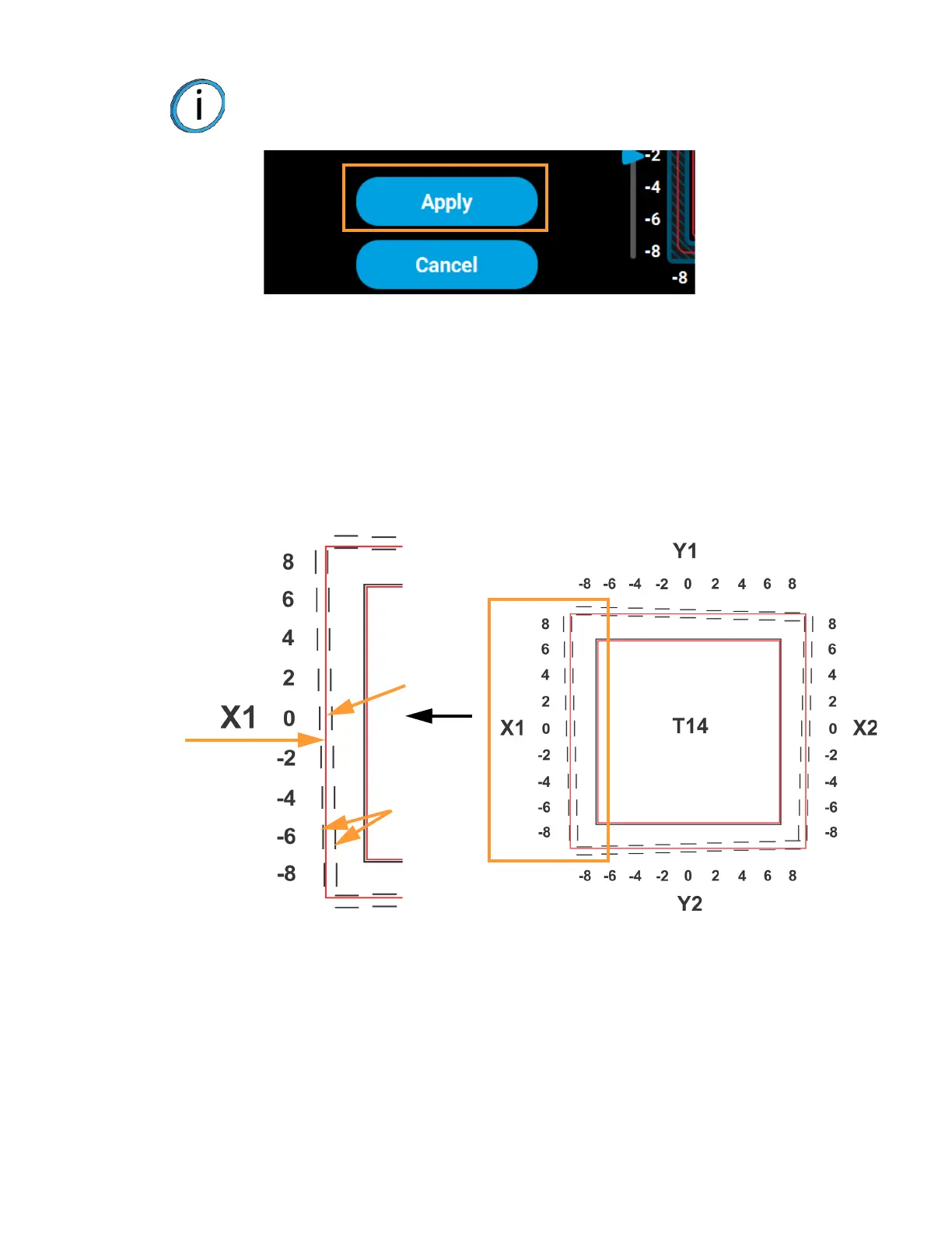 between the X-Y alignment indicators (see Figure 6-10 or Figure 6-11). The numbers on the