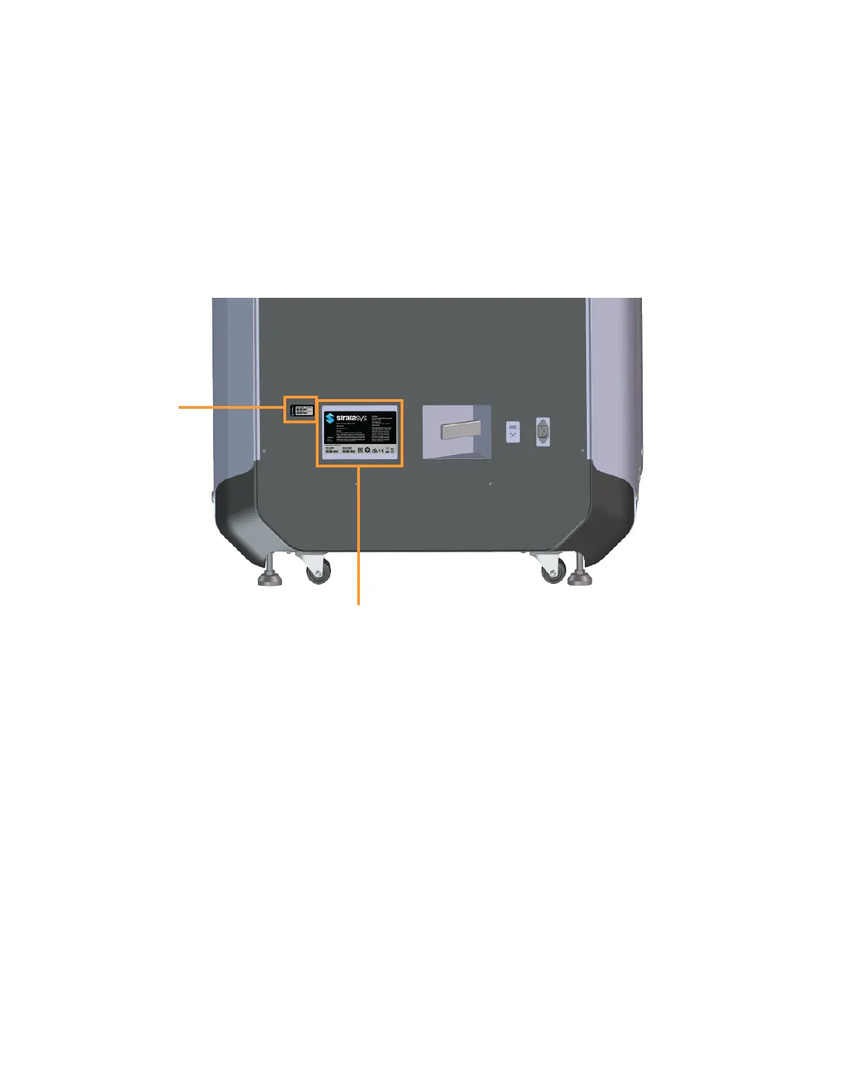 Both tags are located on the back side of the printer near the bottom, and are typically placed near the printer’s