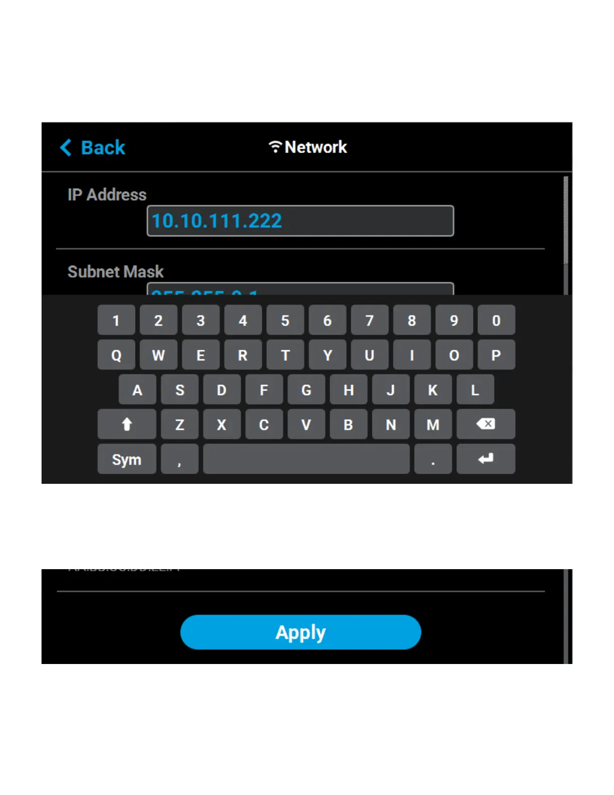 Gateway Address fields.To configure this information simply touch a field on the screen to select