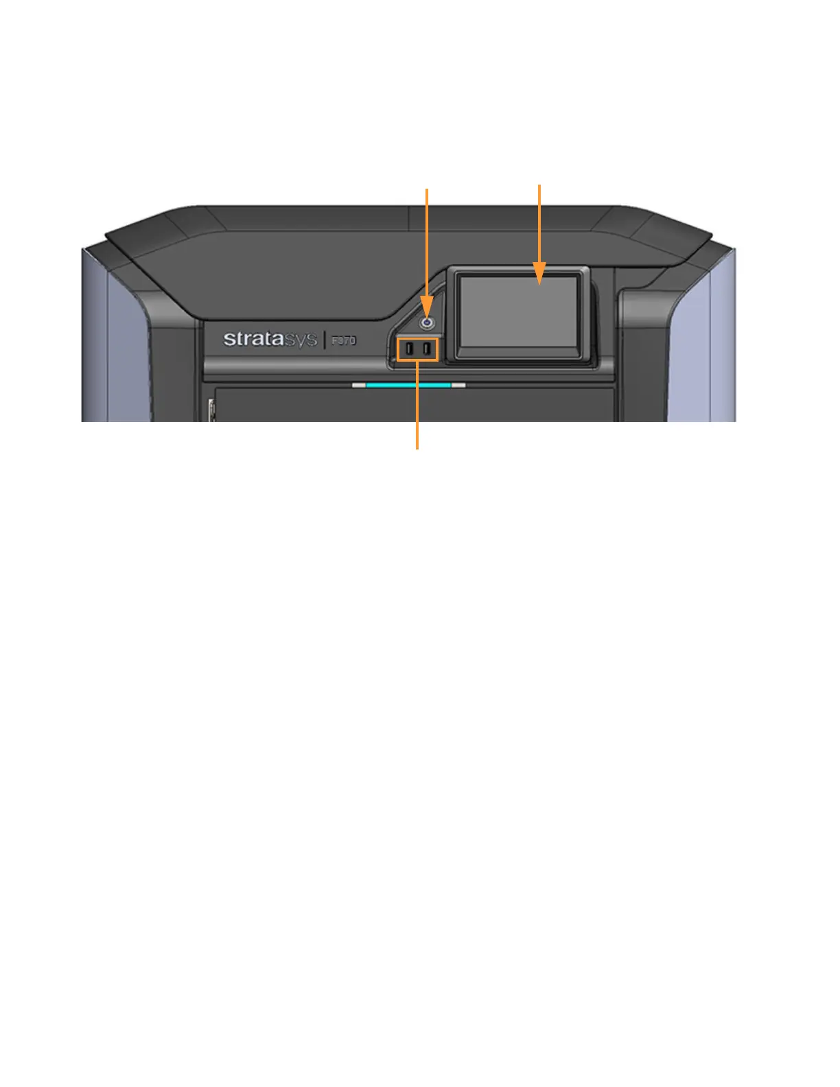 The interface panel houses the printer’s touchscreen user interface, power button, and USB ports.