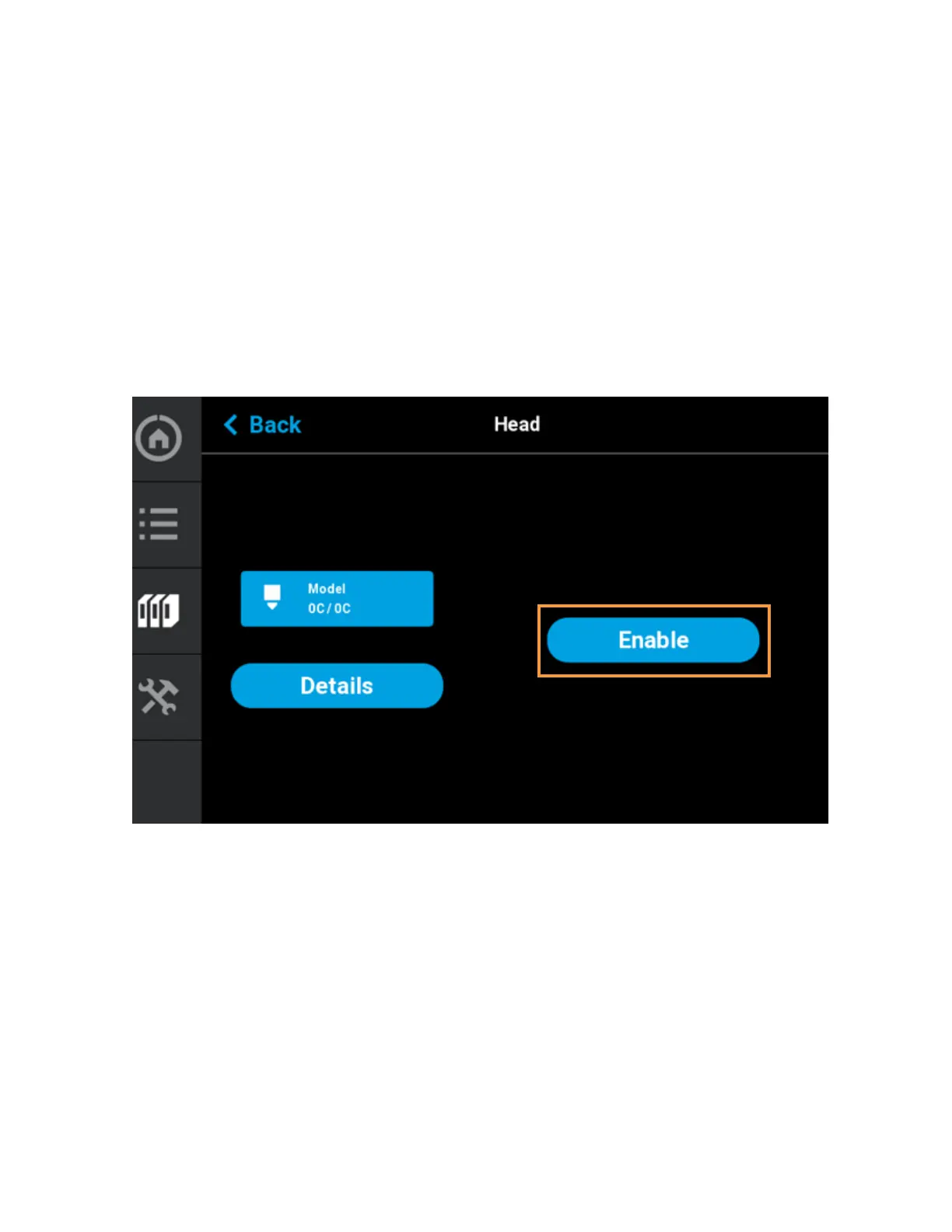 Pressing the Enable button puts the corresponding head into a maintenance state when the top cover has been