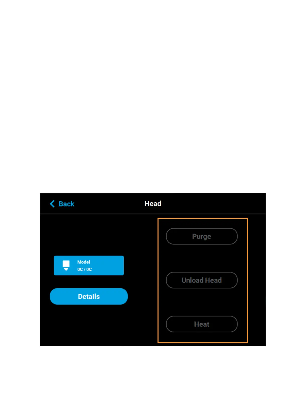 unload material from the corresponding head; the button will toggle to display the Load Head button. A
