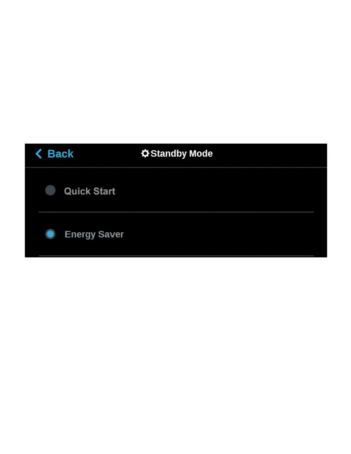 To configure this setting, press anywhere within the Standby Mode row; the Standby Mode page will be
