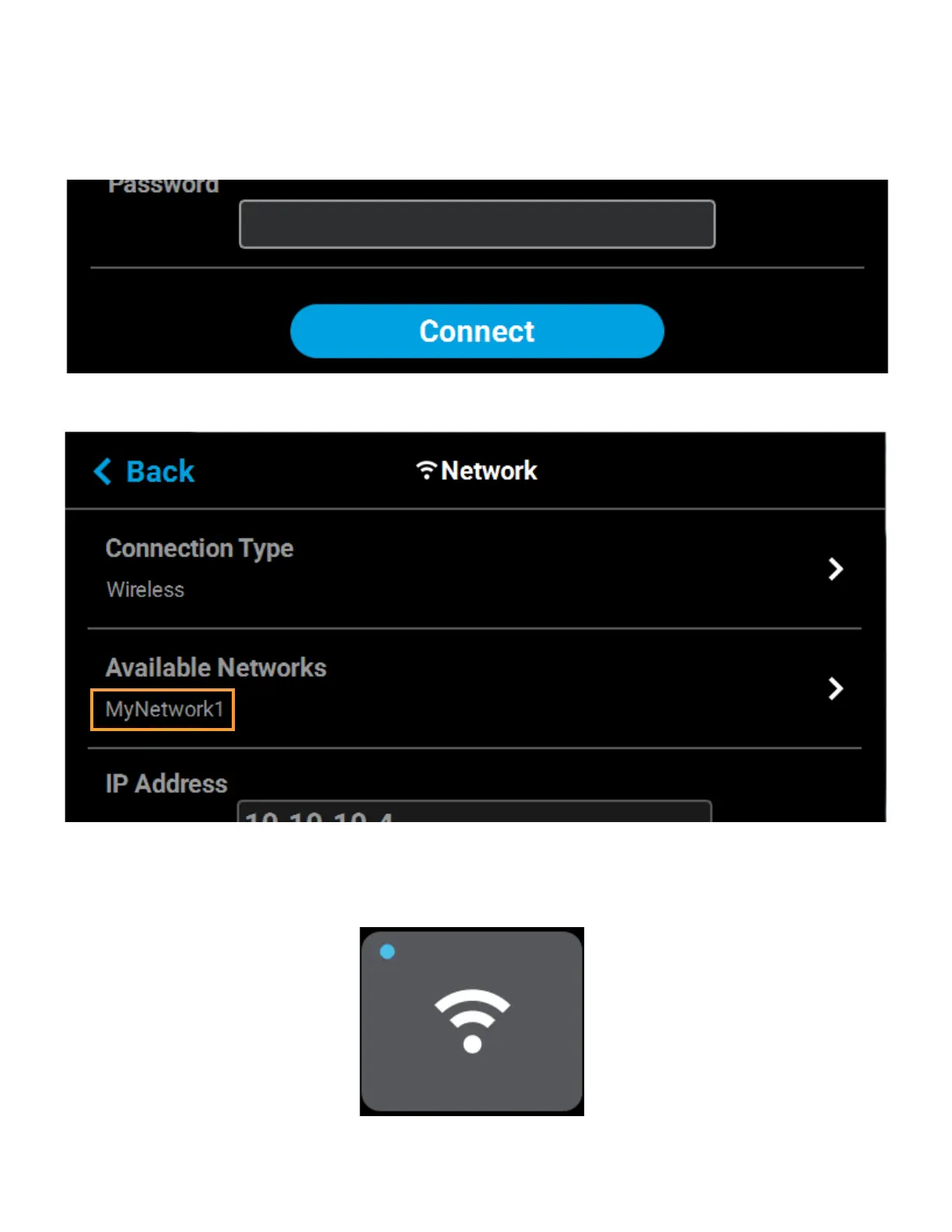 selected wireless network will be displayed within the Available Networks row.