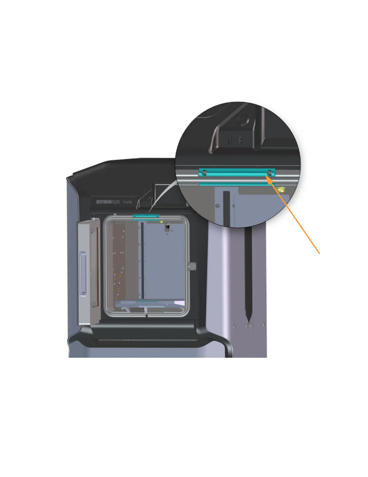 A single light pipe is mounted on the front upper edge of the oven and is used to illuminate the oven chamber