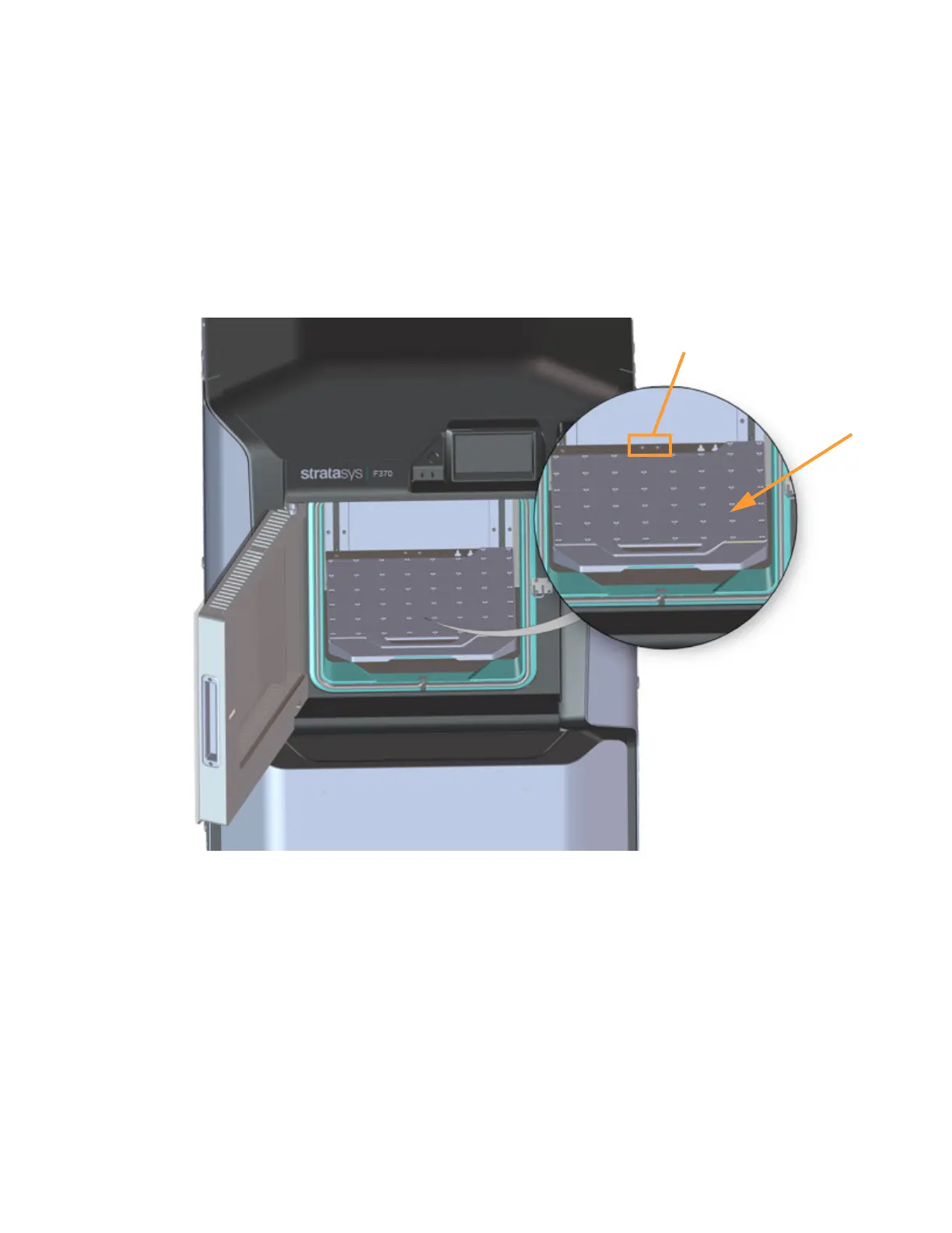 The steel platen provides the level surface on which parts are built. A substrate is securely affixed to the platen