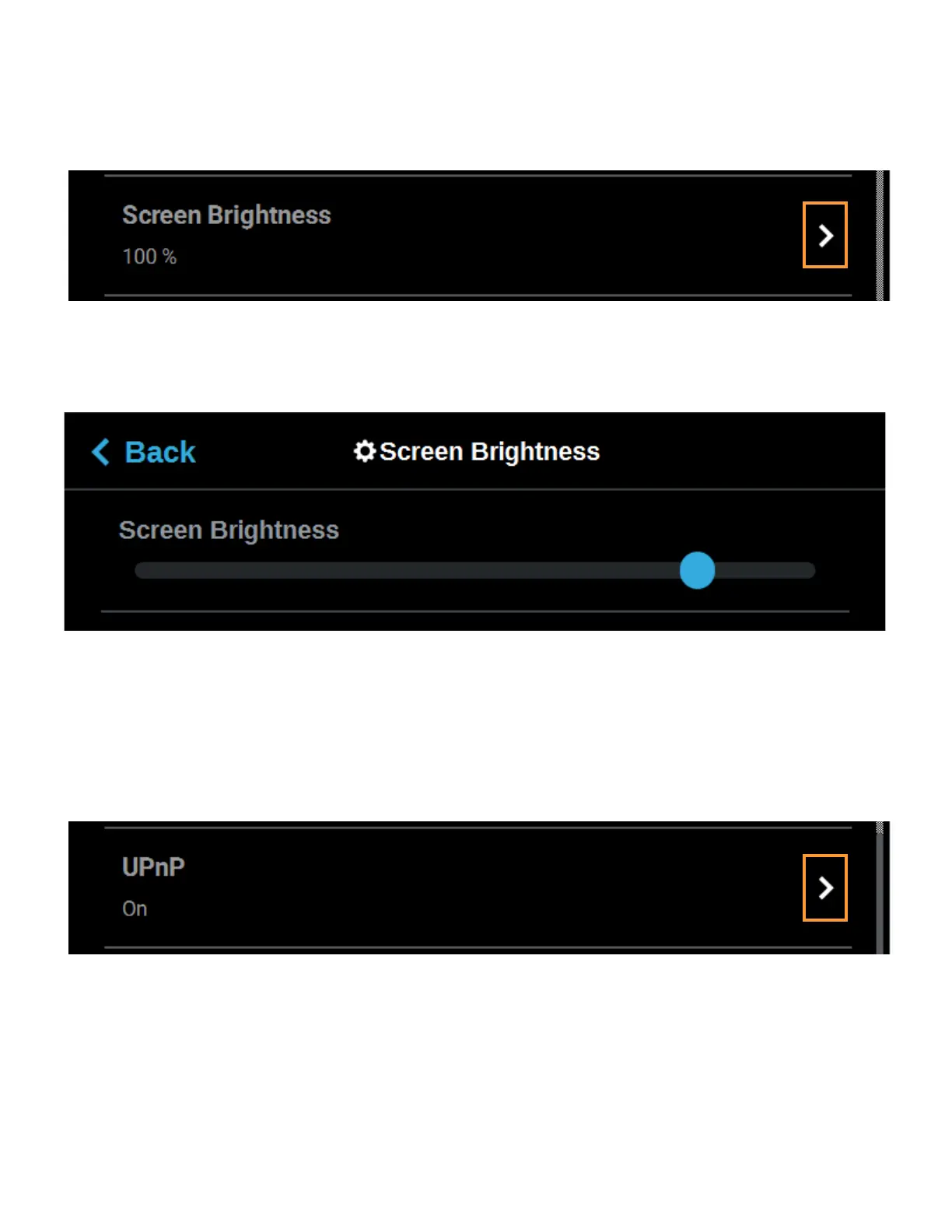 To configure this setting, press anywhere within the row; the Screen Brightness page will be displayed. Within