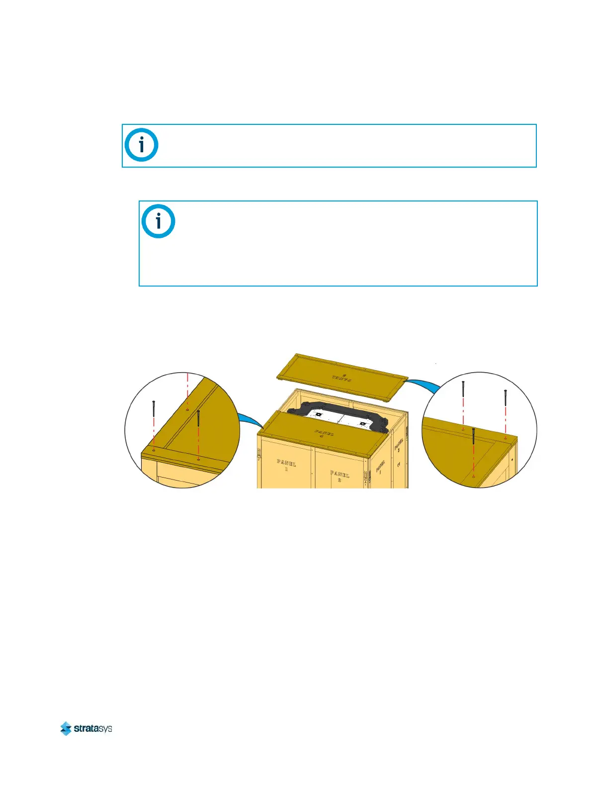 Figure 7: Removing the top crate panels (printer bag not shown)