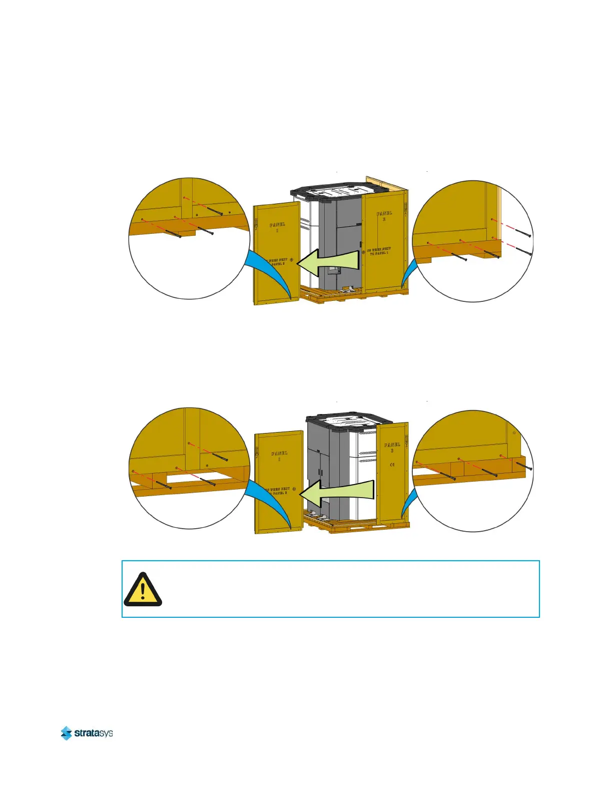Figure 11: Removing the remaining crate panels (printer bag not shown)
