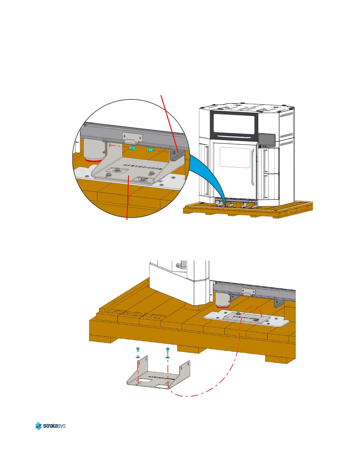 retention brackets (4) to the shipping base. Remove the retention brackets.