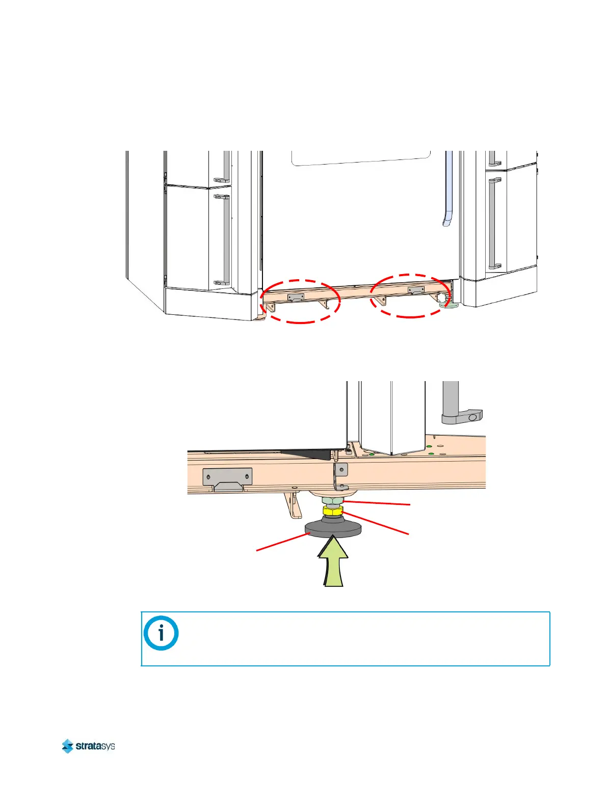 14. While the printer is elevated, rotate the printer stabilizing foot (front right) counter-clockwise
