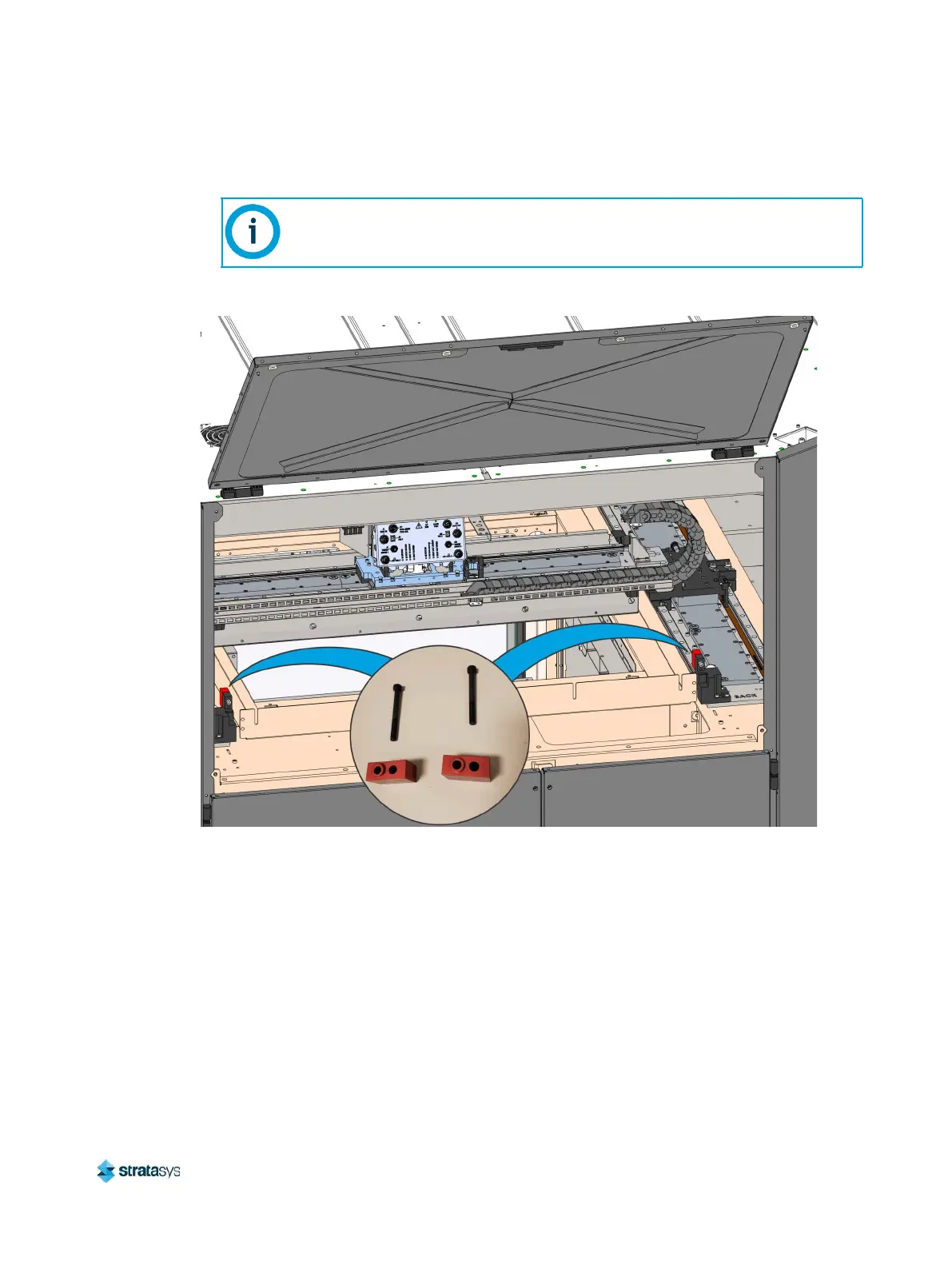 bridge to the back of the gantry. Retain the red blocks and screws for shipping purposes.