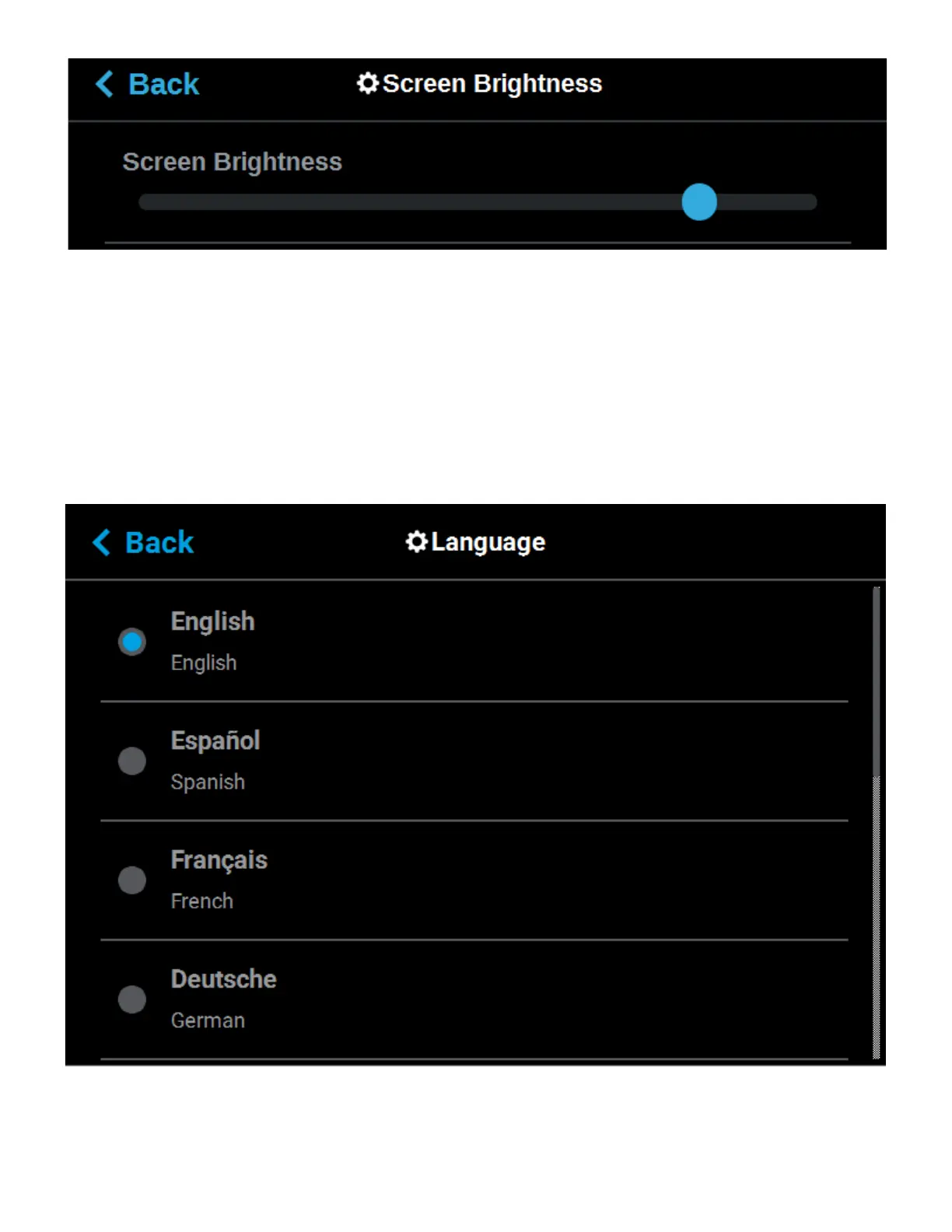 the UI exhibit a different language. In addition to English the display language can be set to Spanish, French,