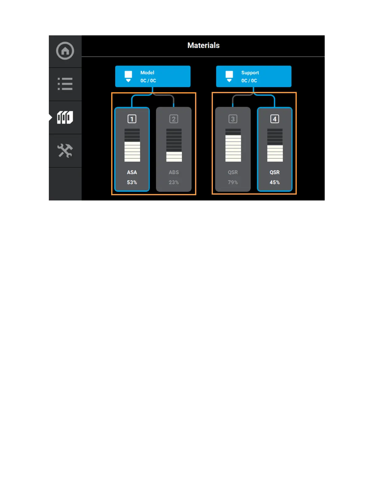 • Blue border - indicates that a valid material spool is inserted into the corresponding material bay, the