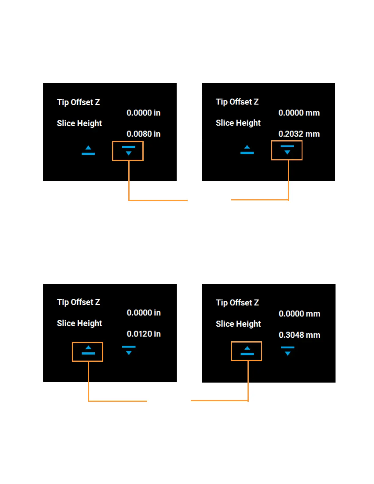• Use the Up button to enter the value obtained in step C if this value is greater than the tip’s slice