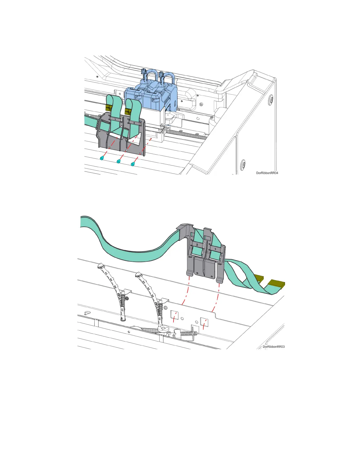 8. Lift and disengage the rear ribbon cable bracket from the back, top of the printer frame.