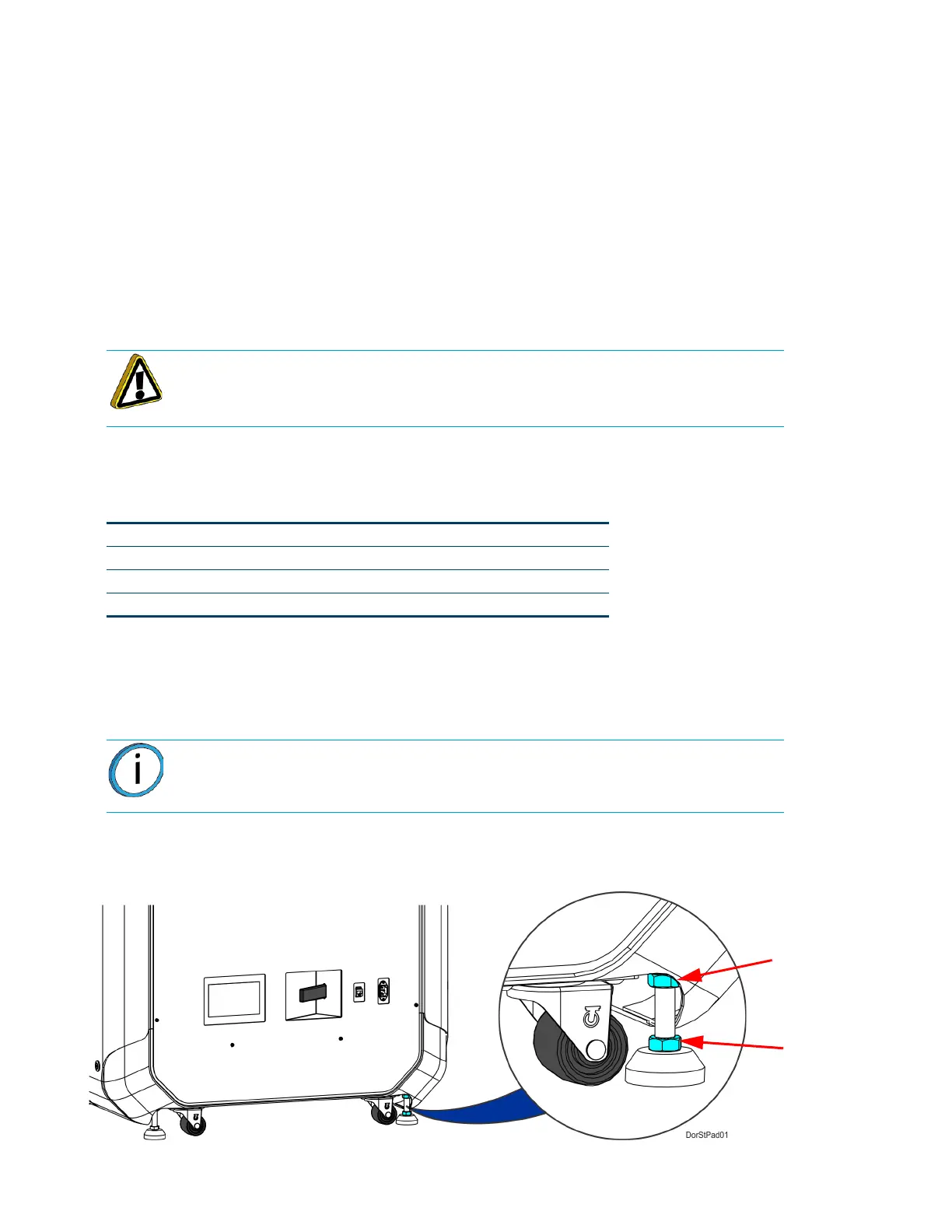 Note: Ideally, each caster wheel will remain in slight contact with the floor and